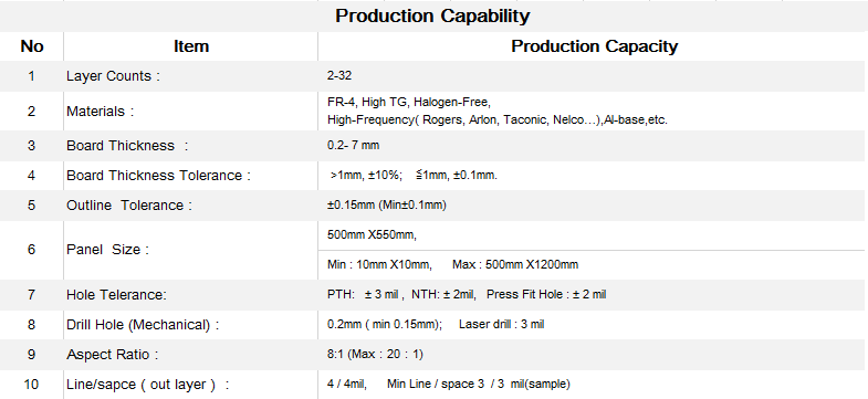 Equipments Capabilities Certificates Lead Time