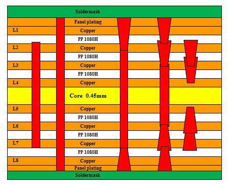 激光盲孔+电镀填孔工艺 L1-2 & L7-L8